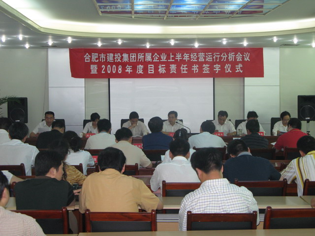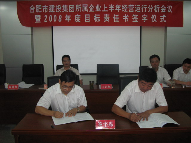 7月23日下午,集團公司所屬企業上半年經營運行分析會議暨2008年度目標責任書簽字儀式在301會議室召開。集團公司領導王昌旭、吳曉東、陸勤航、程世琴,市國資委業績考核處處長汪浩、稽查員許國漢,八家所屬企業全體領導班子成員及集團公司相關部門負責人參加會議。會議由集團公司副總經理吳曉東主持。