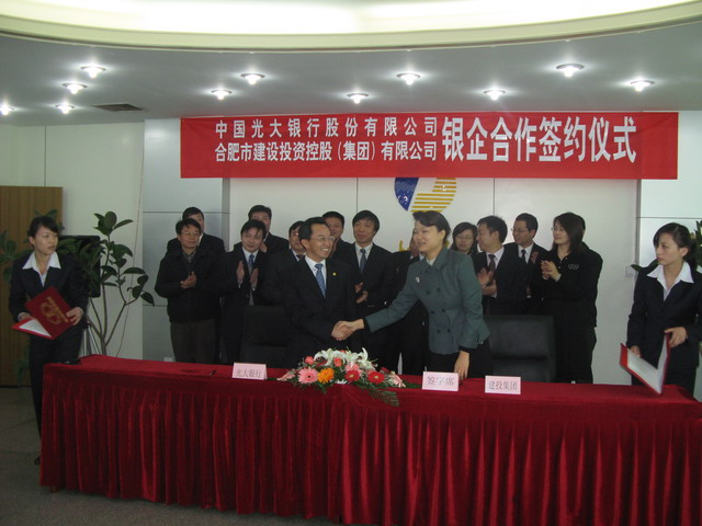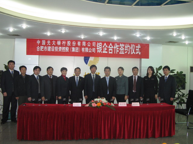 繼今年4月份合肥市建設投資控股(集團)有限公司(以下簡稱合肥建投)與中國工商銀行簽訂200億元融資協議后,再傳喜訊,12月1日上午,合肥建投與中國光大銀行簽訂商業合作協議,中國光大銀行將在2008年至2011年期間,向合肥建投提供30億元的融資支持,主要用于合肥市城市基礎設施等重點項目的建設。
