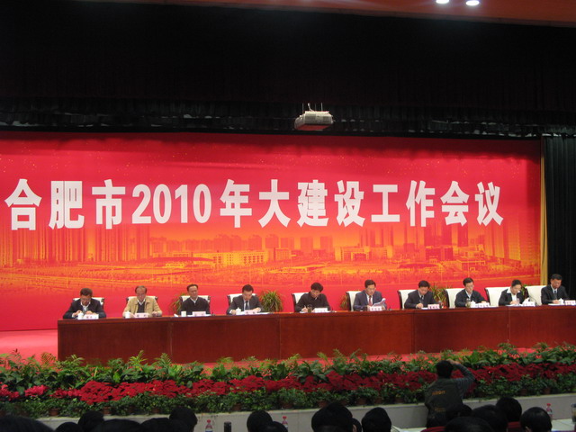 2010年3月18日下午,合肥市2010年大建設工作會議在市政務中心召開,省委常委、市委書記孫金龍出席會議并作重要講話。省住房和城鄉建設廳廳長倪虹出席會議并講話。市政協主席董昭禮,市人大常委會副主任謝剛,副市長李紅等出席。市委常委、秘書長安列主持會議。