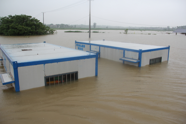 早在4月中旬,建投集團就積極應對今年汛情,對所屬企業(yè)防汛工作進行了周密部署。隨著我省防汛抗災進入關鍵階段,金太陽公司于6月24日成立廬江環(huán)圩河50兆瓦光伏電站防汛指揮部,由金太陽公司董事長、總經理龔崧任總指揮,同時根據(jù)汛情啟動防汛應急預案,抽調人員24小時值守升壓站、巡視河堤。在進入汛期后,實時監(jiān)測水文數(shù)據(jù),一方面,根據(jù)地勢、水情利用防洪沙包進行封堵,同時購置大功率柴油發(fā)電機、大功率水泵等設備部署在室外排水溝及室內電纜溝處,以確保主變壓器等相關設備的安全;另一方面,全力做好后勤保障工作,配備充足的救生衣、船只、膠靴、雨衣、食品、飲用水等救援物資,保證一線抗洪人員的吃穿住行及設施設備安全,解決后顧之憂。在這次保衛(wèi)國家財產與自然災害的特殊戰(zhàn)斗中,建投集團各級干部職工不畏困難、沉著應對、科學決策、行動有力,以高度的責任感和使命感排除萬難,最大限度地保護了人民群眾生命安全和國家財產安全,彰顯出建投人無所畏懼、勇往直前的先鋒本色。