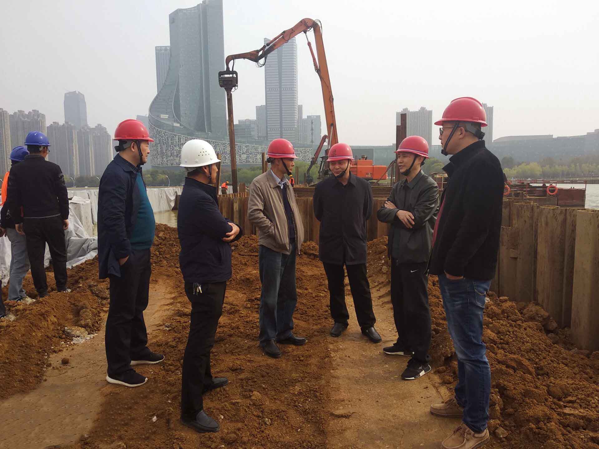 陸勤航總經理深入項目現場,對施工進度、質量、安全等進行了詳細了解,并聽取了鋼筋籠制作和安裝、鋼板樁圍堰和鉆孔灌注樁施工、泵站基坑開挖等情況的匯報。在全面了解項目各項工作后,陸勤航總經理要求,一是要及時統籌協調項目各方面工作,推動現場施工井然有序開展。二是要要把握好施工重點難點,充分保障施工進度。三是要嚴格落實各項制度,加強現場管理,確保項目施工及人員安全,扎實做好安全文明施工及環保措施。