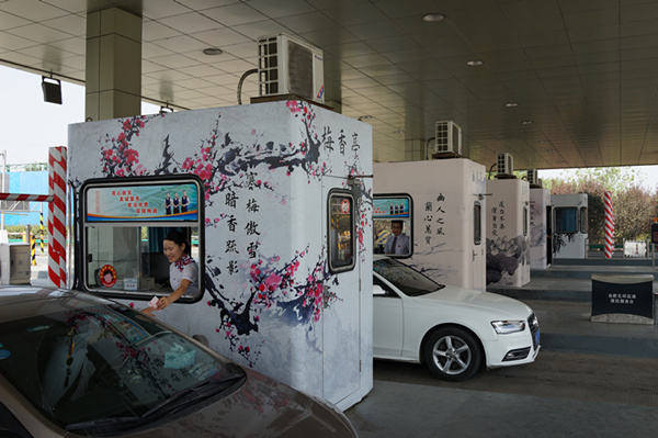 合肥繞城北環高速雙墩收費服務站是合肥市北部交通的重要出入口,連接滬陜、滬蓉、蚌合、合徐等高速公路,日均進出口車流量超過1萬臺,共設有四進六出九座崗亭,也是重要的服務窗口。交投公司充分發揮收費服務站車流量大、輻射面廣的特點,以廉政內容為主題,采用“蓮、松、竹、梅、蘭”的形象貼畫,對收費亭進行美化升級,并命名為“清風亭”。同時,依托服務區內“園、廳、廊、墻、室”等設施,設置形式多樣、內容豐富的廉政標語、貼畫,創建了振風林、浩然亭、凈思館、百廉窗、廉政廊等廉政文化景觀,與自然景觀交相輝映、相得益彰,將整個服務區打造成有文化有內涵的廉政文化教育陣地,大力提升司乘人員視覺享受,同時潛移默化中傳遞廉政理念,形成雙向多邊互動的動態格局,切實增強廉政文化的輻射力。